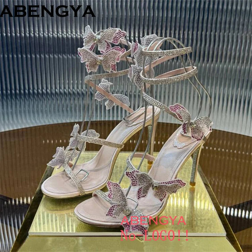 2025 Summer High Heels Sandals Women Crystal Flower Snake Strap Stilettos Party Shoes Shinny Female Sandalias Mujer