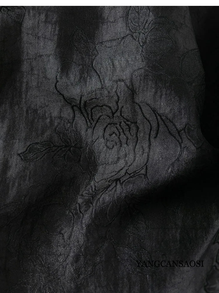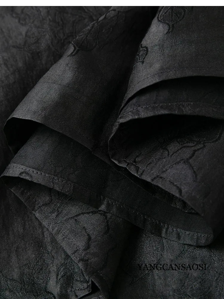 2025 Women's Fashion Summer New 100% Natural Mulberry Silk Turtle Crack Gambiered Guangdong Gauze Elastic Waist Black Skirt