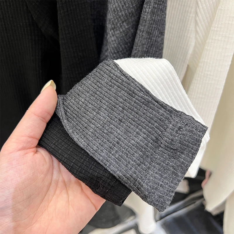 Autumn Women T Shirt Vintage Slim Fit Versatile T-Shirt Women Casual Solid Button O-Neck Long Sleeve Tees Femme Ribbed Y2k Top