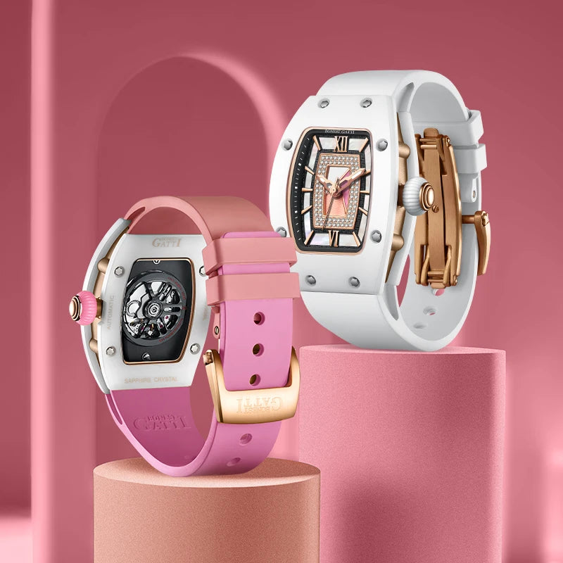 BONEST GATTI Automatic Watch Luxury Lady Watches Tonneau Mechanical Wristwatch Rubber Strap Butterfly Clasp Watches For Women