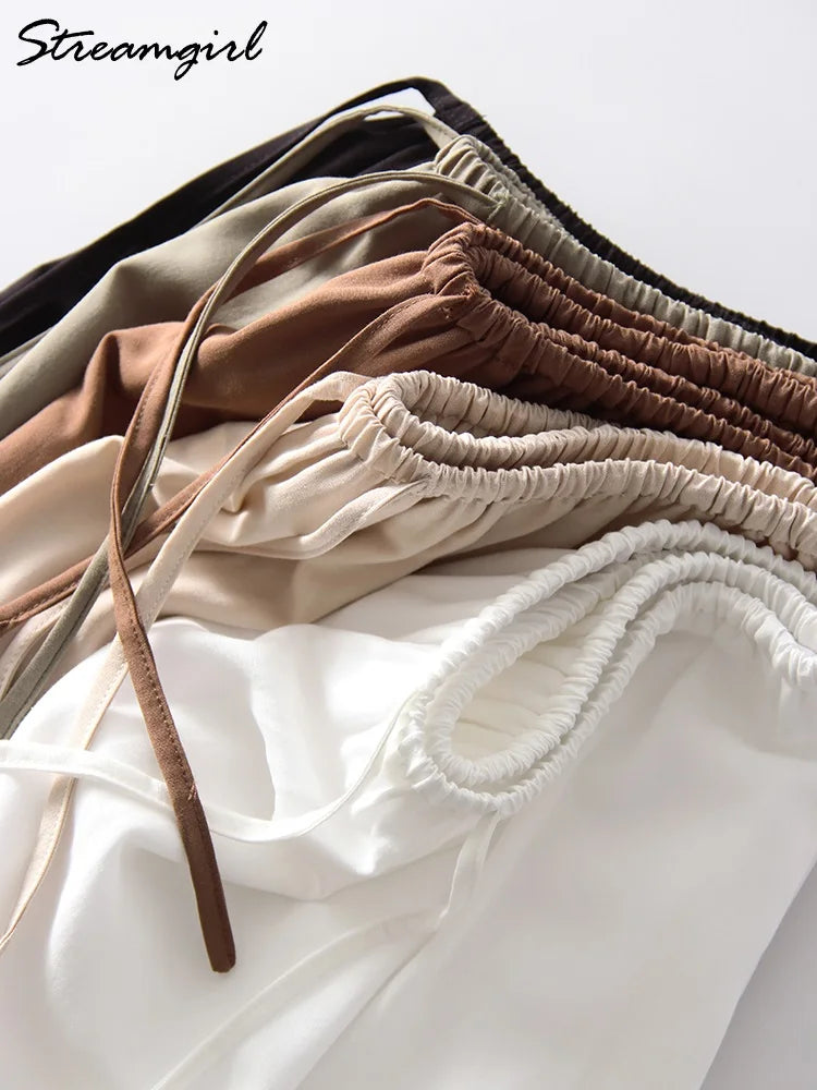 Brown Long Skirt Women Summer Cotton Ruffle Floral Skirt Woman Luxury Green Tie Up Loose White Women Long Skirts High Waisted