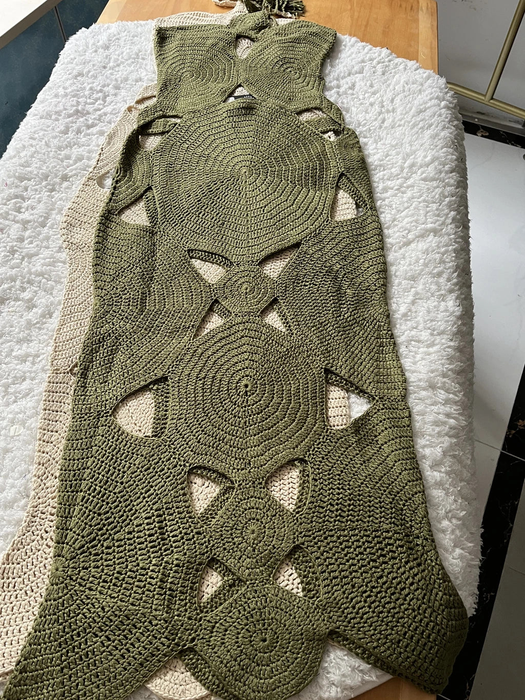 Bungalow Handmade Crochet Midi Dress Cream For Sexy Women Fashion Cut Out Halter Vacation Dress Club Party Hollow Out Dress