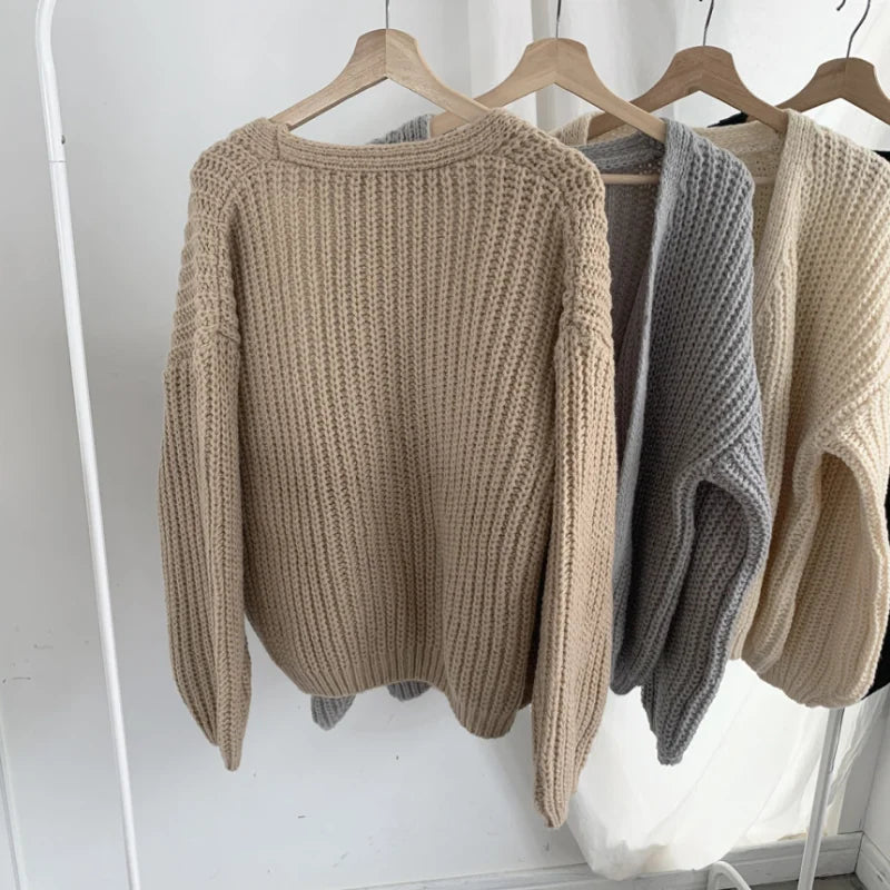 Casual Knitted Cardigan Sweater Women Autumn Fashion Korean Harajuku Lantern Sleeve Tops Looose Coat Lazy Wind Y2k Sweater 23328