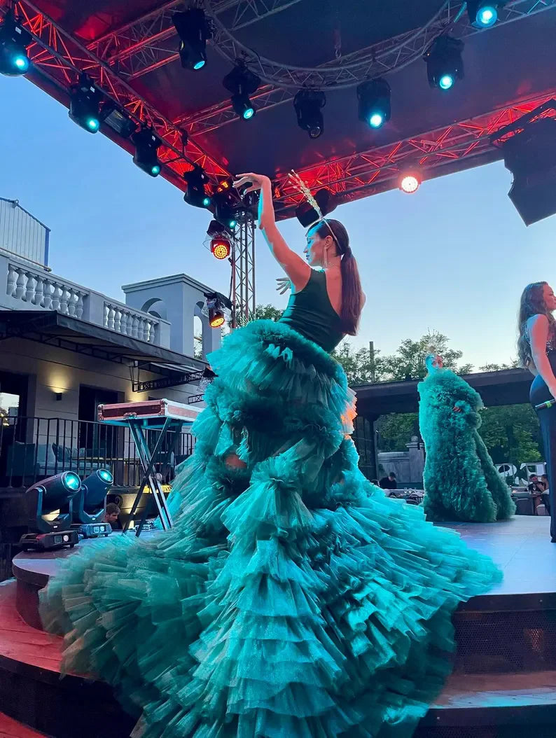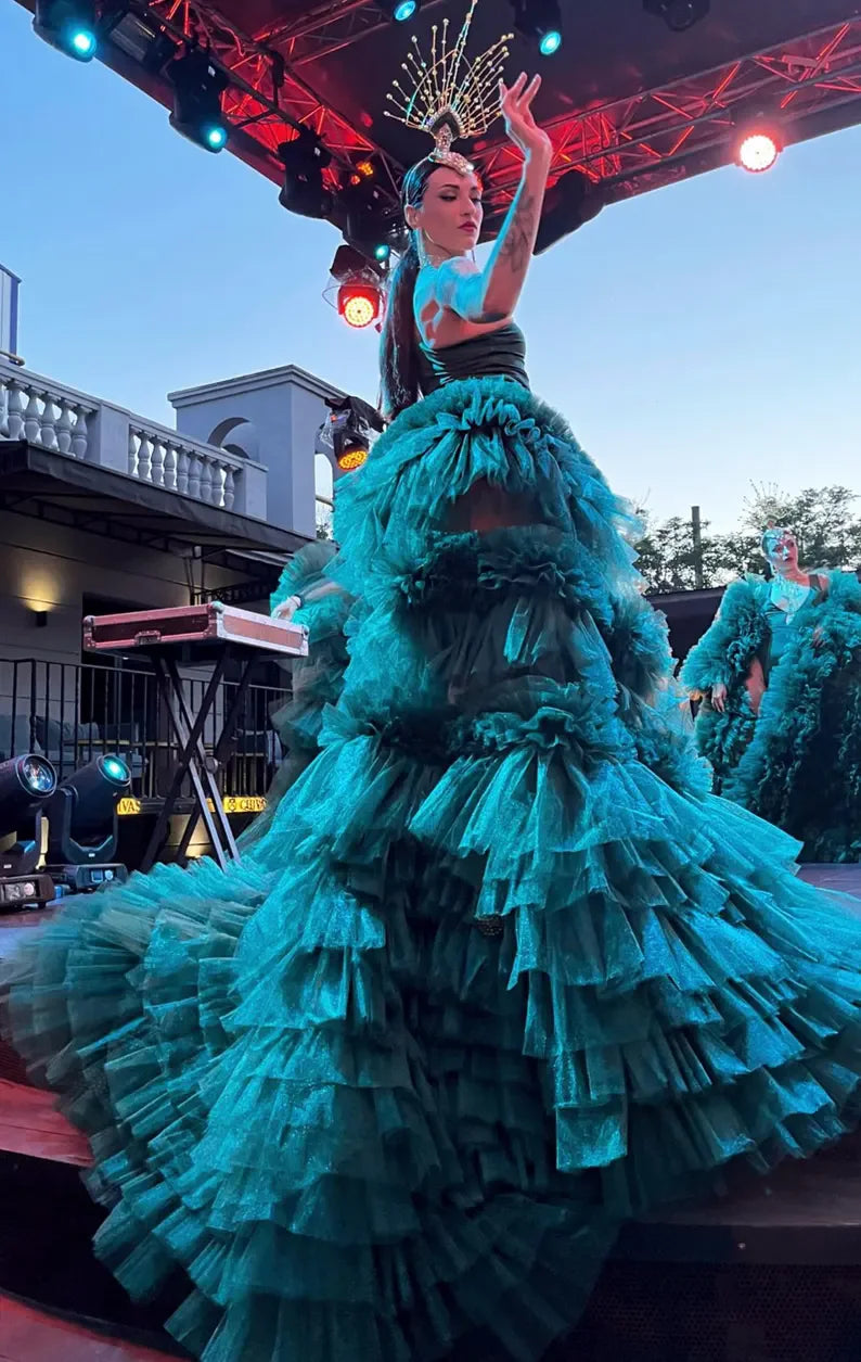 Handmade A-line Long Ruffles Trimmed Tulle Skirt Women Maxi Skirt Dramatic Dance Show Performance Skirt
