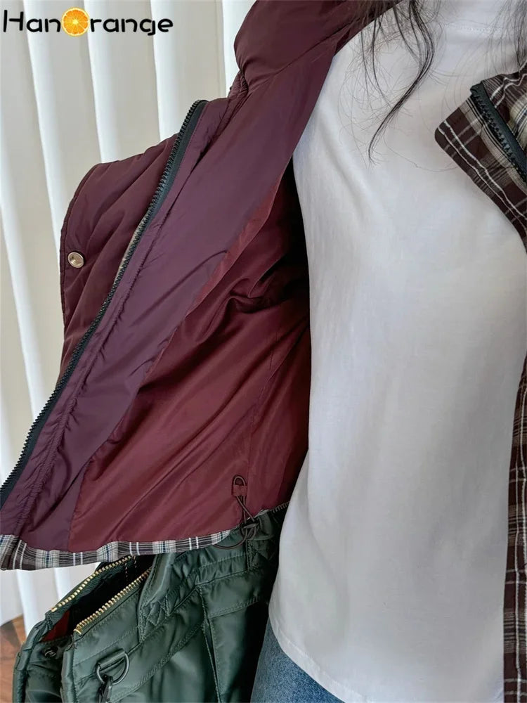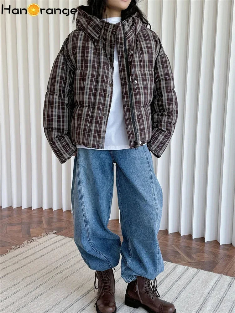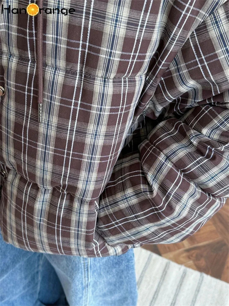 HanOrange 2024 Winter Fashion Retro plaid Hooded Cotton Jacket women Comfortable Warm Loose Women Coat