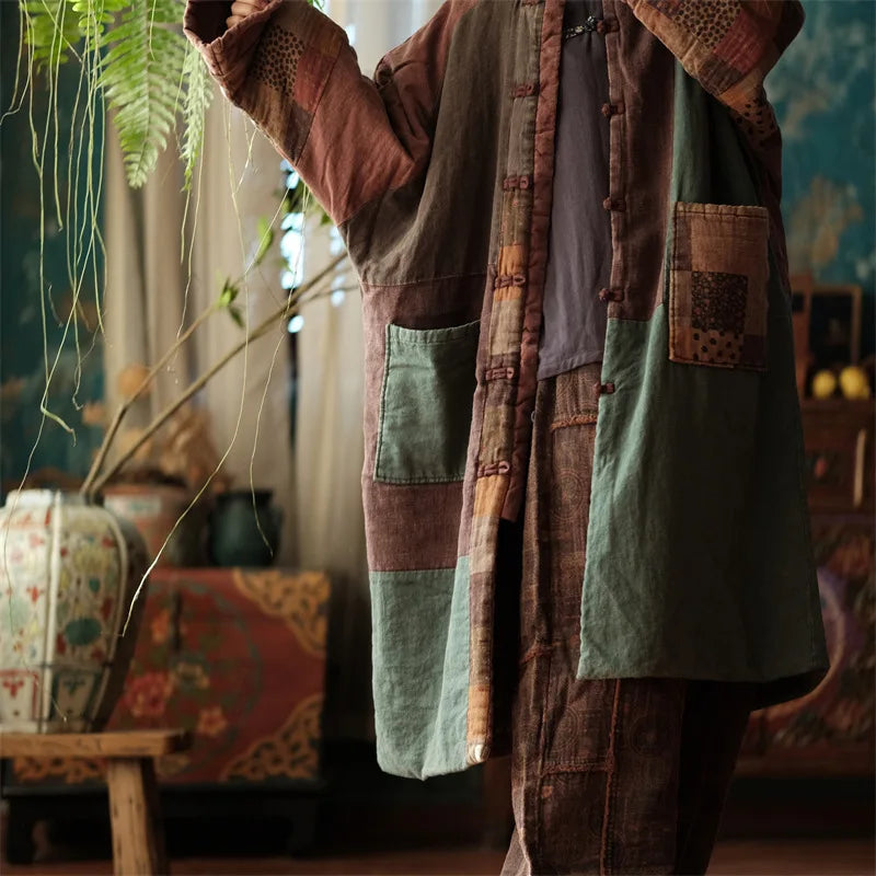 Johnature Women Winter Vintage Parkas Stand Long Sleeve Button Plus Cotton Winter Coats 2025 New Chinese Style Women Parkas