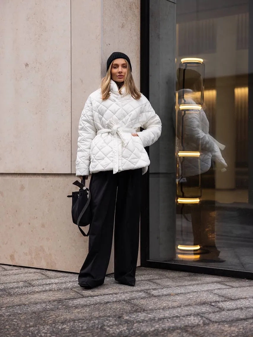Lace Up Cotton Coat Lady Fashion Casual Stand Collar V-neck Full Sleeve Loose Outerwears Women Winter Daily Commute Street Coats