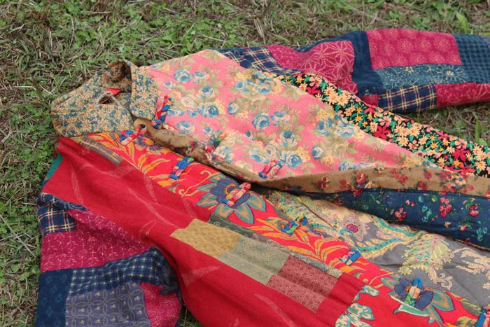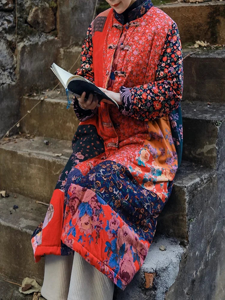 LZJN Women's Winter Single-breasted Cotton Jacket Traditional Chinese Coat Long Patchwork and Cotton Thick Jacket