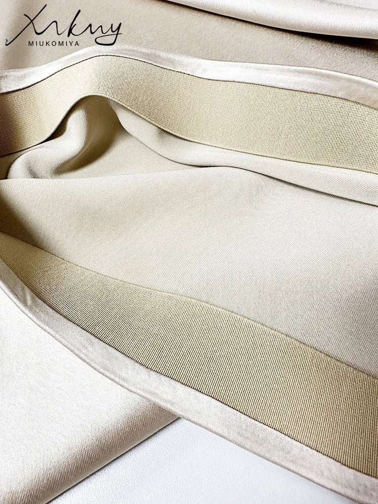 MiuKoMiYa Black Women Long Skirts High Waist Slit Satin Maxi Skirt 2025 Summer Elastic Waist Beige Skirt For Women Long Silk