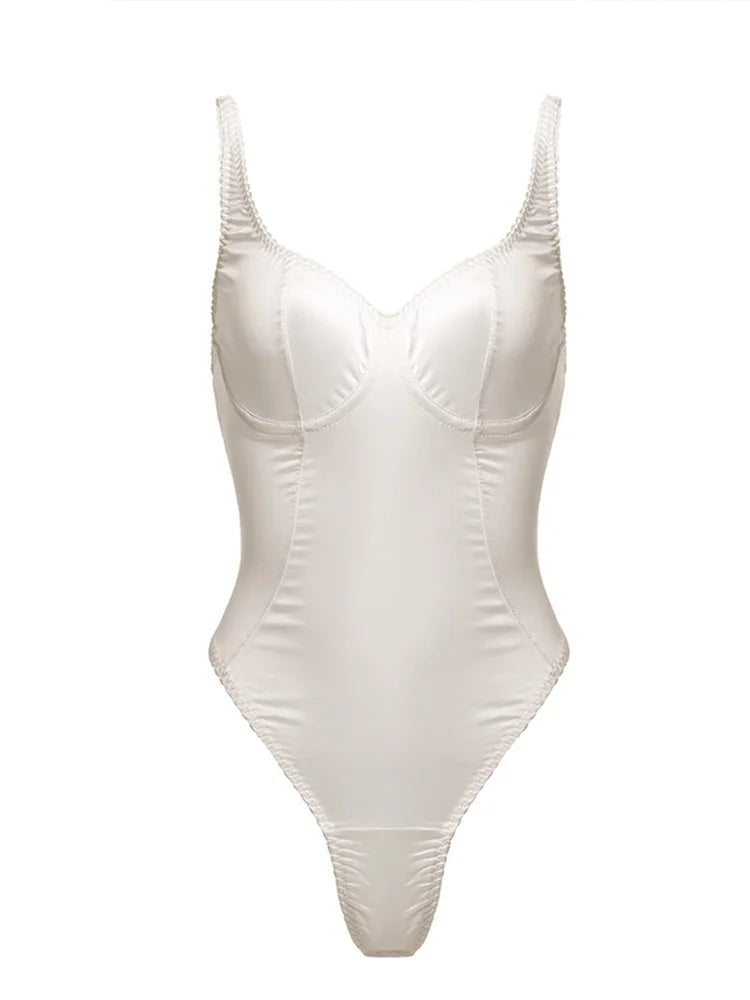 Sexy Satin Slim Corset Rompers Women Solid Sleeveless Backless V-neck Short Jumpsuit Female 2025 Summer Lady Party Club Bodysuit