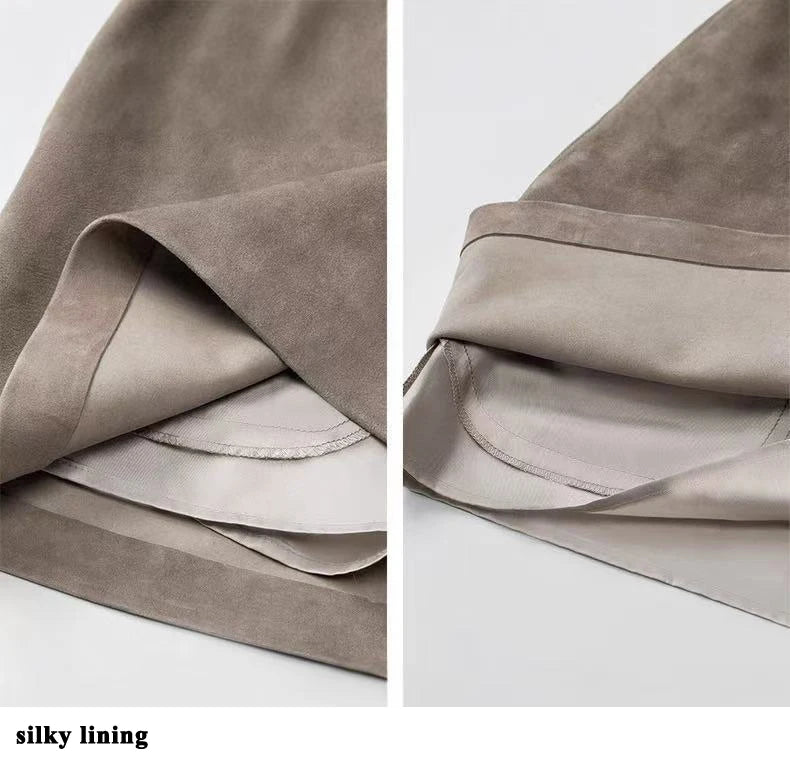 Suede Leather Mini Skirt for Women 2025 Spring Chic Sexy Slimming A-line Pocket Micro Jupe Mujer Streetwear Show Long Leg Saias