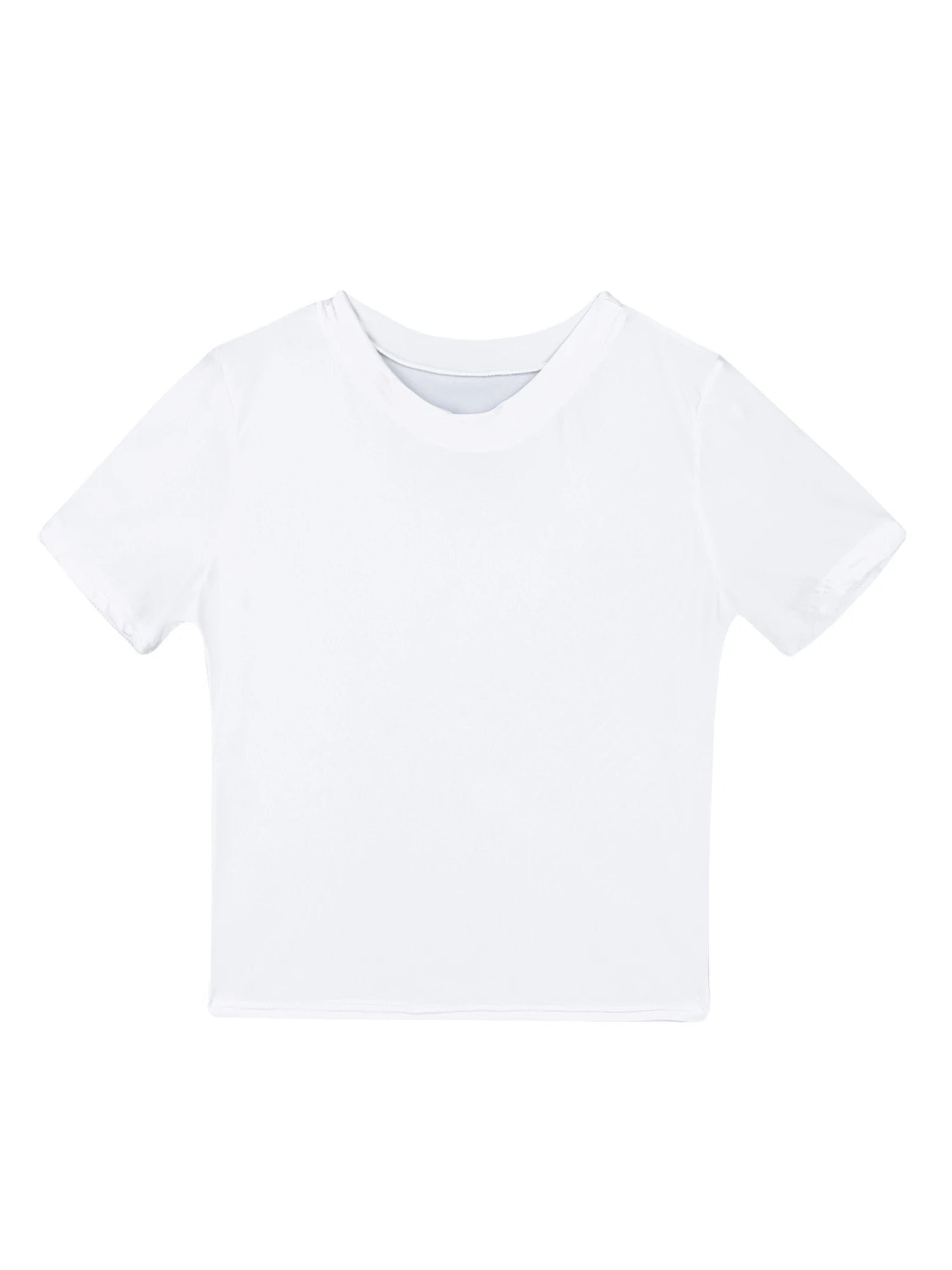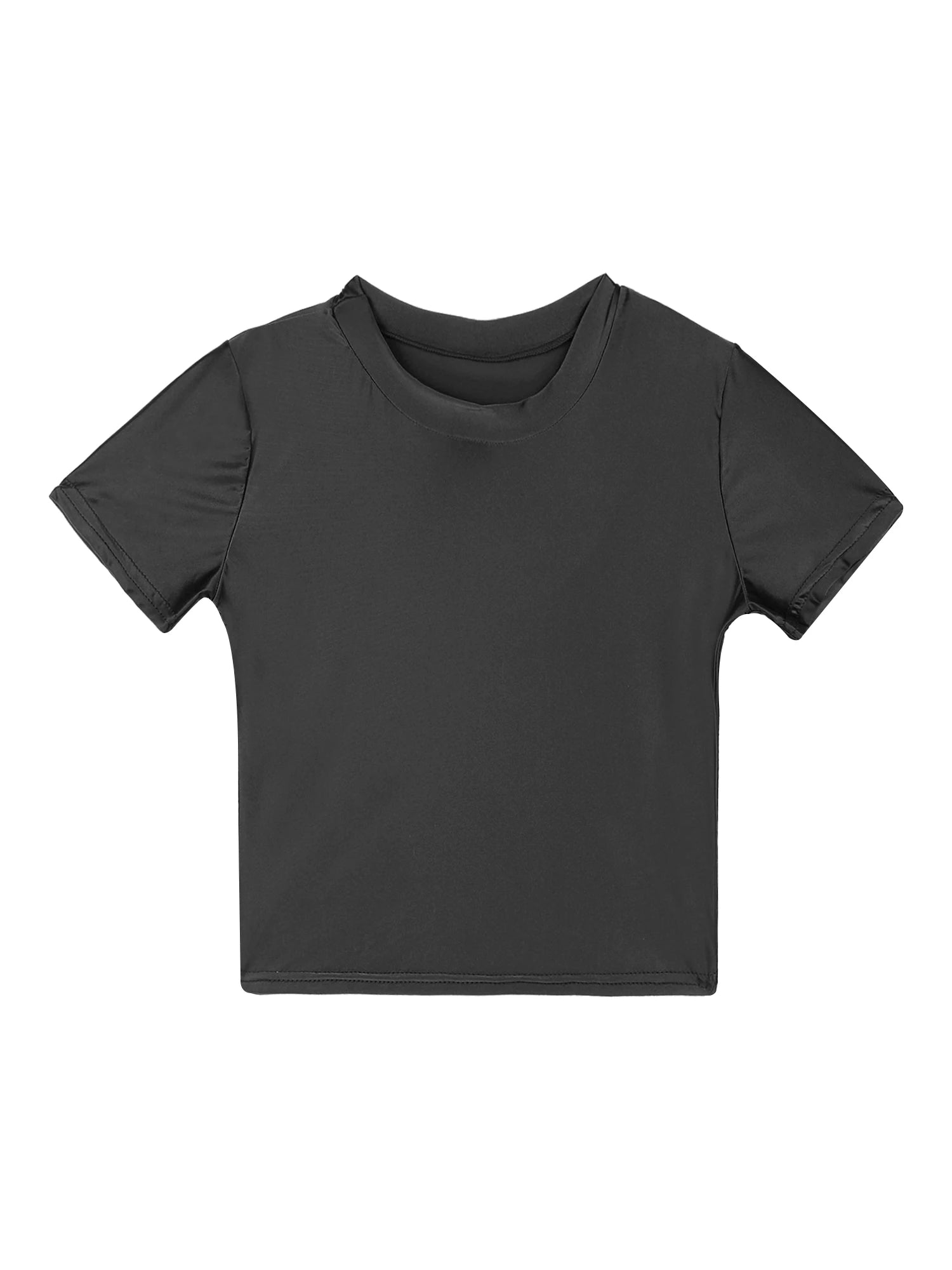 Women Glossy Short Sleeve Crop Tops Solid Round Neck Slim Fit Smooth T-shirt Summer Swimwear Swimsuit Sportswear Beachwear