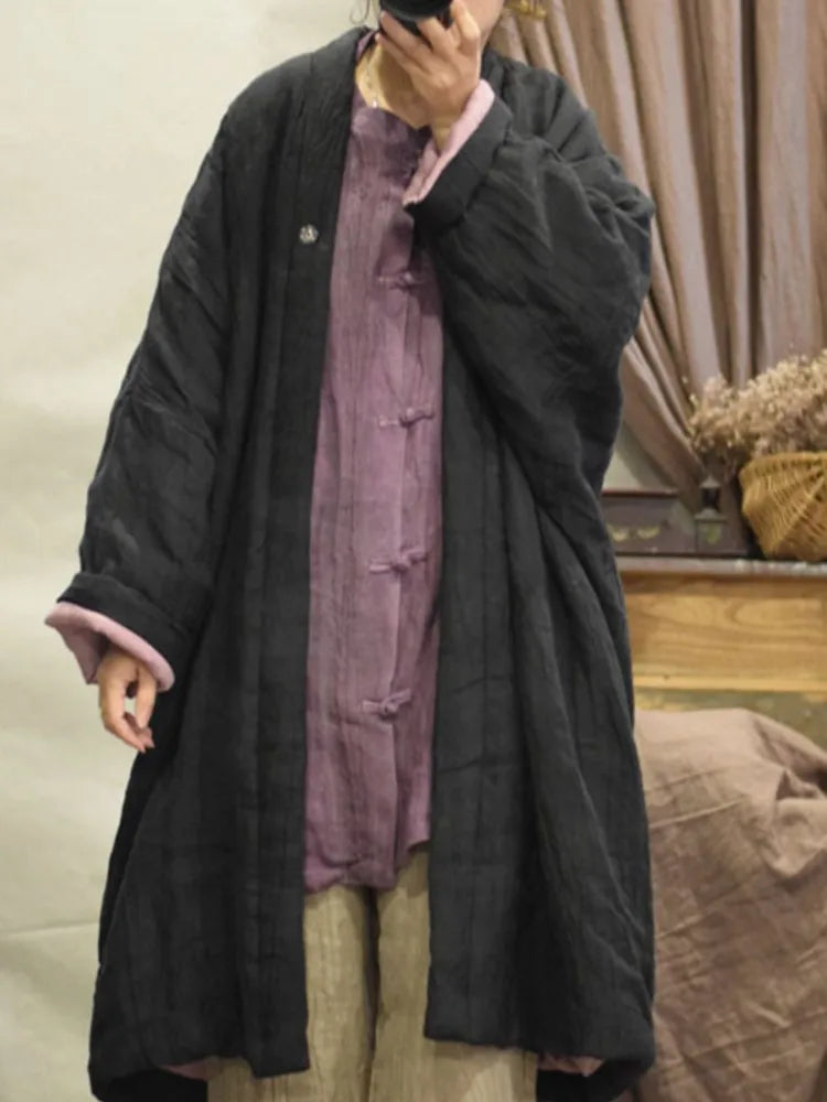Women Loose Linen Padded Long Coat Parkas Ladies Vintage Flax Coat Female 2023 Winter Coat Tops