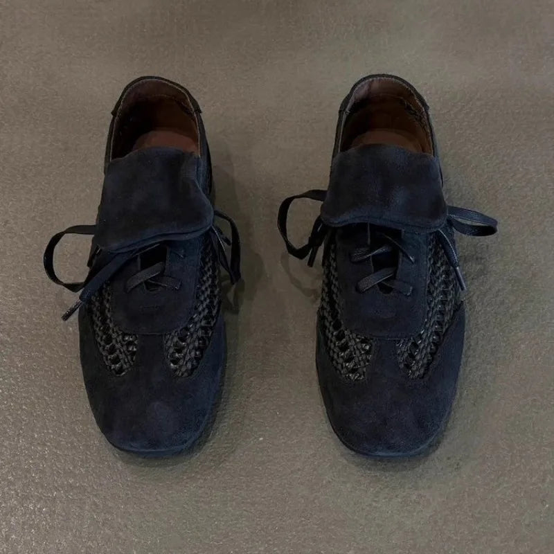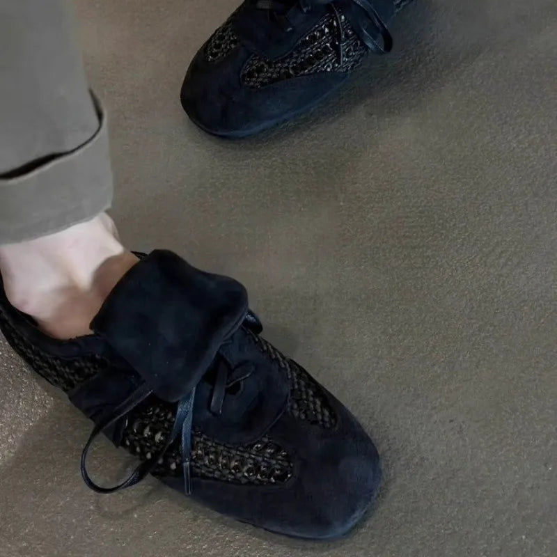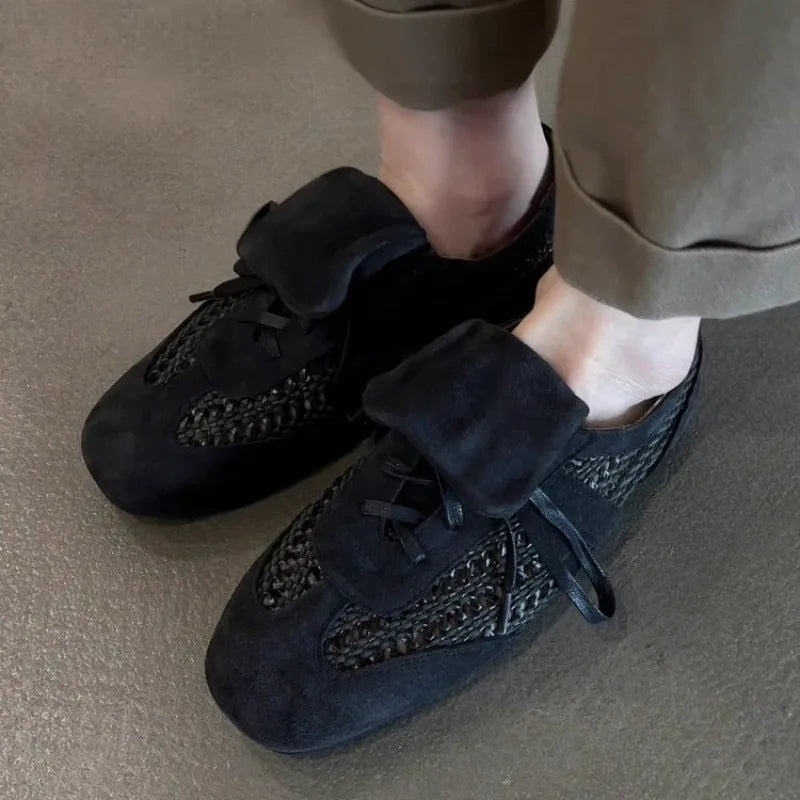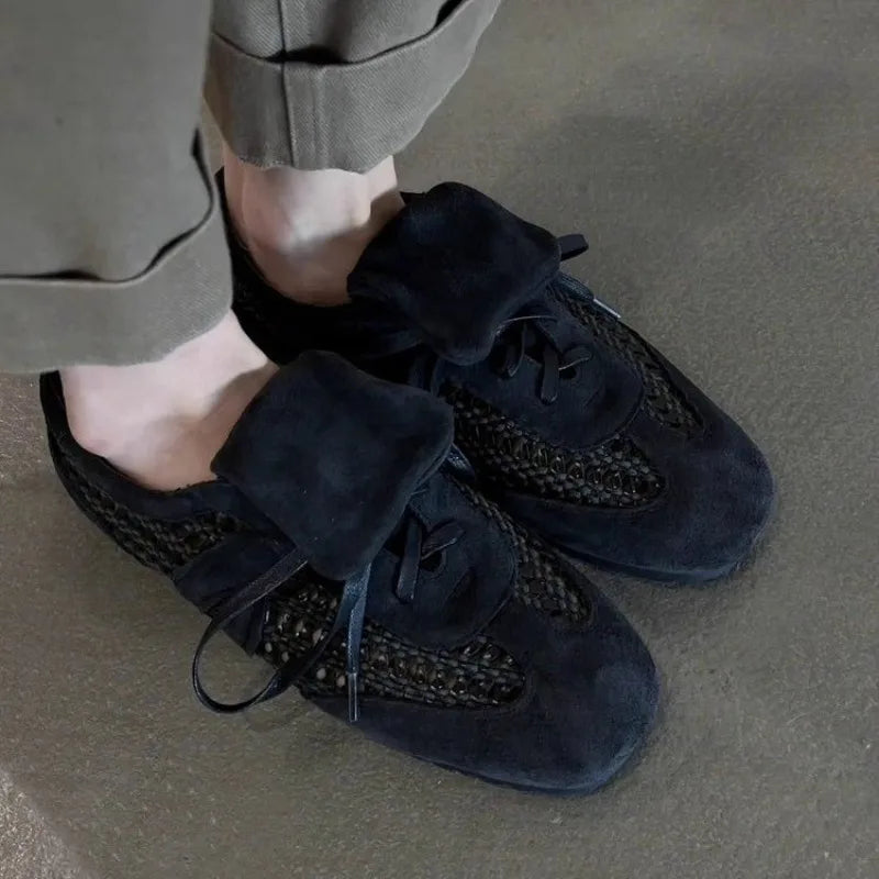 Women's Soft Sole Soft Sneaker Fall New Round Toe Deep Mouth Suede Open Toe Front Lace-Up Non-Slip Flats